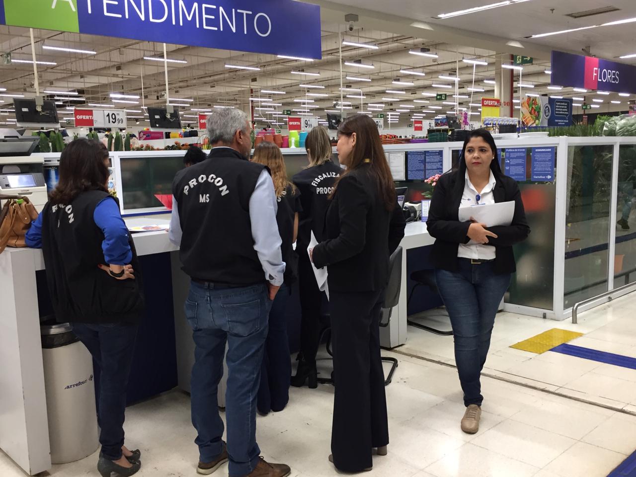 Campo Grande (MS) – Em atendimento a ofício encaminhado pelo Ministério Público Estadual solicitando fiscalização acerca do atendimento de filas preferenciais, equipe da Superintendência para Orientação e Defesa do Consumidor – Procon/MS, órgão integrante da Secretaria de Estado de Direitos Humanos, Assistência Social e Trabalho – Sedhast se deslocou até o Carrefour Hipermercado onde, além do fato que gerou a reclamação, encontrou outras irregularidades.